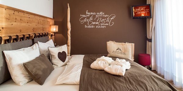 Nell'hotel benessere altoatesino ABINEA potrete staccare la spina e ricaricare le batterie. L'hotel a 4 stelle offre specialità altoatesine e ampi trattamenti benessere. Questa vacanza benessere in Alto Adige offre ai buongustai una cucina regionale altoatesina di altissimo livello. I romantici possono rilassarsi nell'area benessere. Ci sono una varietà di saune, trattamenti di bellezza e persino una spa privata. L'hotel fornisce una piscina interna riscaldata a 34° e una piscina esterna riscaldata a 35°. Offre tutto ciò che richiede la rigenerazione per il corpo e l’anima.